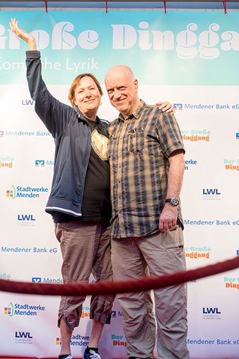Während Gunnar Homann in einer letzten entscheidenden Jurysitzung am 12.5. zum Gesamtsieger des ersten Großen Dinggangs bestimmt wurde, setzte sich Robert Koall am 13.5. mit seiner Lese-Performance beim Publikum durch, das den kleinen dinggang vergab.